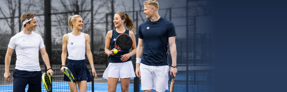 The Racket Club Collection is the perfect eyecatcher for every racket sports player. Whether you play tennis, squash or padel, these singlets, shirts, shorts, skorts, pants or jackets (women, unisex and children) will make you feel invincible.